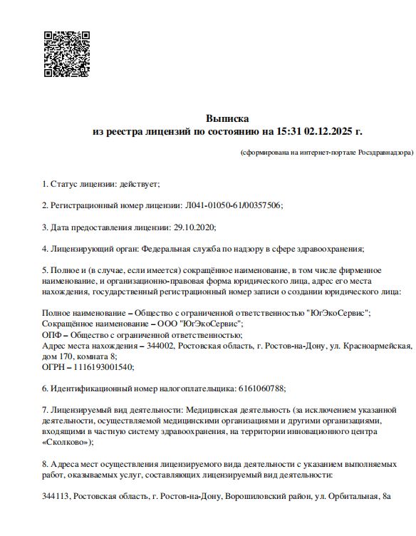 - предоставление профессиональных консультаций на всех этапах лечения.